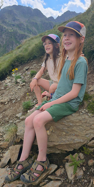 Also ab auf die Piste. Und diesmal war Madame so schlau, kurz vor dem Verlassen des Mobils ihre 2 kleinen Helferlein Olek und Bolek aka Wanderstöcke mitzunehmen. Die Tour wartete mit ordentlich Höhenmetern auf, in die eine wie die andere Richtung. Da fühlte man sich fast wie die schwäbische Eisenbahn...hoch, runter, noch höher, noch weiter wieder runter. Olek und Bolek erwiesen einen hervorragenden Dienst, da auch hier das Gelände sehr felsig und geröllig war. Die Minimenschen dachten sich wohl nur "Wayne interessiert's?" und schwebten wie gewohnt elfengleich über die steinig-wurzeligen Wege. Die Seeumgebung war durchzogen mit Kiefern, bereits verblühtem Ginster, Azaleen und Madames Liebling, dem Wollgras. Die Luft ganz klar, die Seen herrlich erfrischend und das Wetter mit leicht wolkigem Himmel, Sonnenschein und einem kleinen Lüftchen perfekt zum Wandern. Und mit einigen Päuschen zum Futtern und Verschnaufen fühlte sich diese Tour weit weniger anstrengend an als die gestrige. Auf dem Weg zum nächsten Übernachtungsplatz durchfuhr man mal eben schnell Spanien und Frankreich, um dann in Katalonien das Lager mit frisch gefülltem Kühlschrank aufzuschlagen. Eigentlich fiel direkt beim Einfahren auf den Stellplatz in Marinet auf, dass da ziemlich tote Hose war, uneigentlich wurde das ersteinmal von allen sehr erfolgreich ignoriert. Bis sich weitere Zweifel ihren Weg ebneten. Dank Foto-Übersetzung von Google auf Katalanisch war dann auch klar, warum hier Totenstille herrschte - Platz geschlossen bis 15.7. Och menno. Dann also noch mal zurück auf die Strecke und den nächsten Campingplatz angefahren. Und nun steht man wirklich heimelig unter Platanen direkt an einem Fluss. Und einen Pool gibt es auch. Was will man meer?! Höhö.
